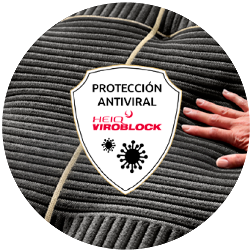 Tecnología suiza antiviral y antibacterial, presente en el tejido superior del colchón; que drestruye a través de contacto físico los virus y bacterias inhibiendo su proliferación, para que disfrutes de un sueño más higiénico y saludable.